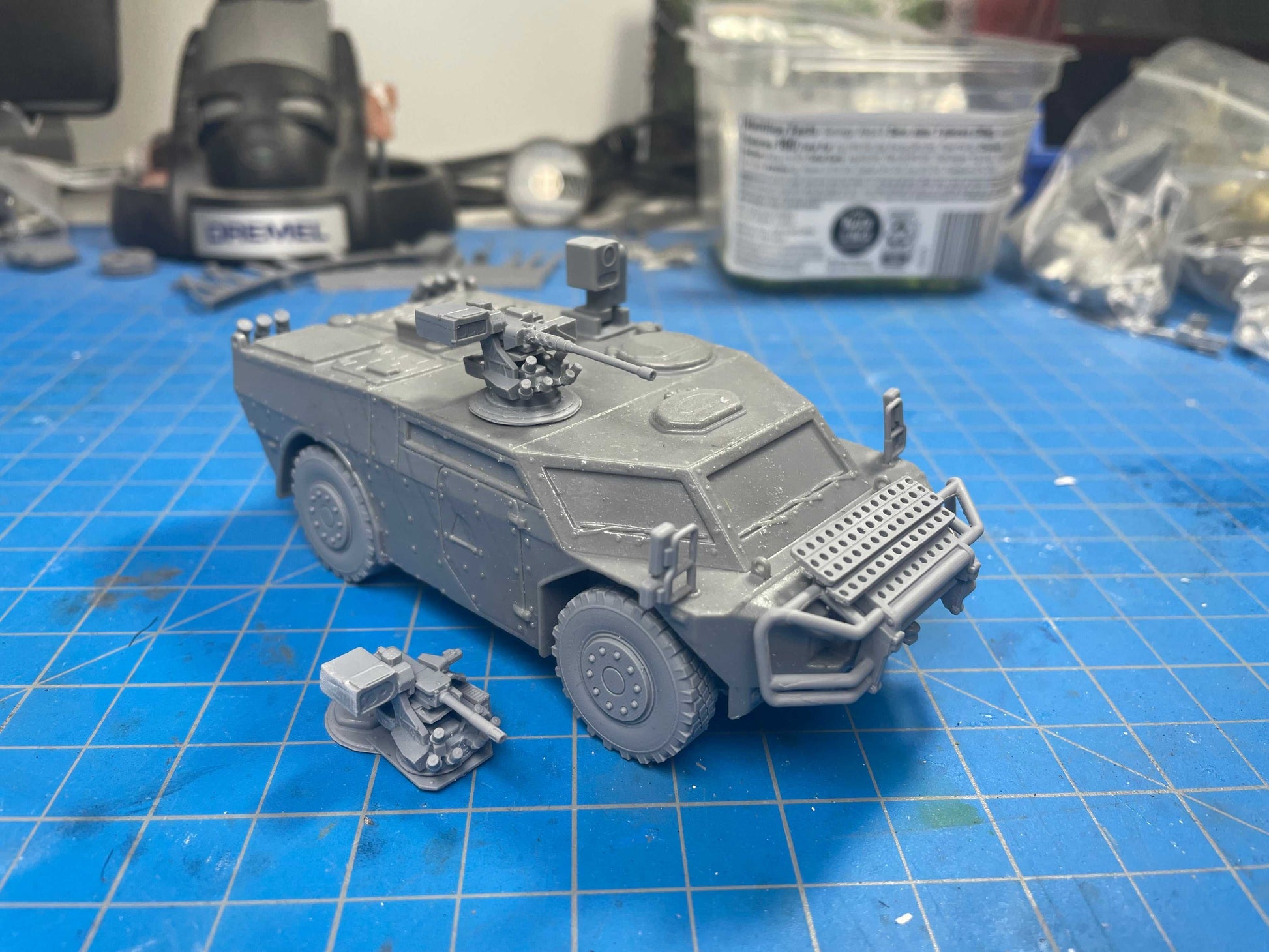 This is a 1/50 scale model of a Fennek. This is resin cast parts and Fennek body.